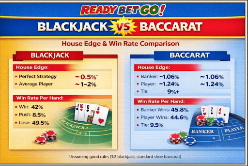 Blackjack has the statistical edge in theory if you play near perfectly. Baccarat has a slightly higher edge, but simplicity reduces the chance of human mistakes.